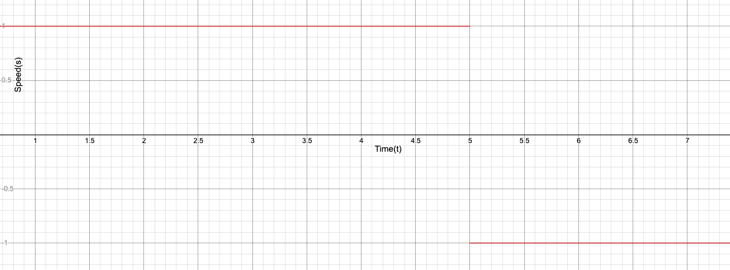 The procedure described in this post is to make a robot's drivetrain change in speed by following a sigmoid function. In previous years, we would simply pass in the the joystick value as the speed for the drivetrain to move at. An issue that can occur through this is that if the driver is going full speed forward and then decides to suddenly go full speed backwards the sudden change can cause motors or gears to break or get damaged (Figure 1). Our first attempts to change this was to use PID loops to smooth the transition, but the issue we saw with PID loops is that we had no proper way to predict a graph of the change based on the PID values prior to driving the robot, and the graphs we got after driving the robots did not display the speed change we hoped for (Figure 2 is similar to what we saw). Our programming mentor suggested we program the drivetrain to follow a sigmoid curve and after viewing the curve, we saw that it was the best solution to our problem (Figure 3).